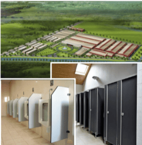 + Cung cấp và thi công vách ngăn compact HPL lõi đen, dày 12mm, màu ghi, chịu nước, phụ kiện inox 304