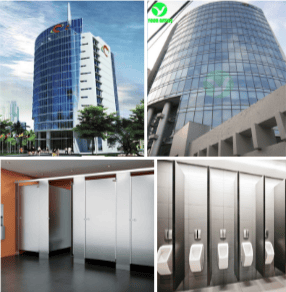 + Cung cấp và thi công vách ngăn vệ sinh bằng tấm Compact dày 12mm, có hèm chống ồn, ray phủ mạ Inox